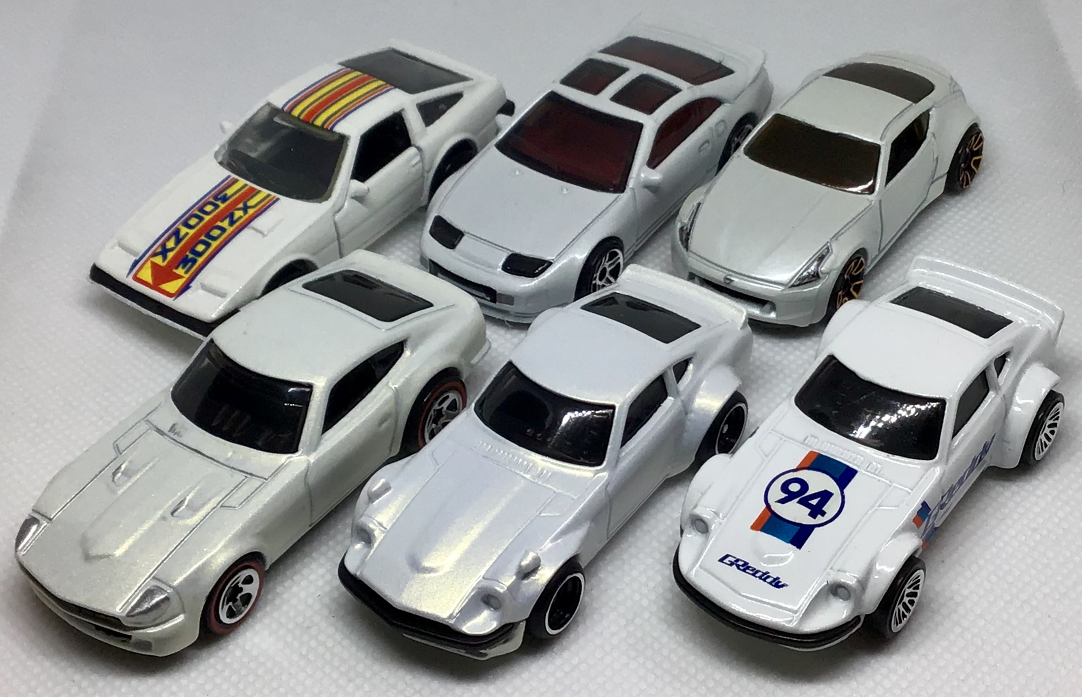 The latest 300ZX in white extends a selection of Z Cars from Hot Wheels with shades of that color. It is possible the production of so many white variations reflects that traditional Japanese racing colors have a base of white.